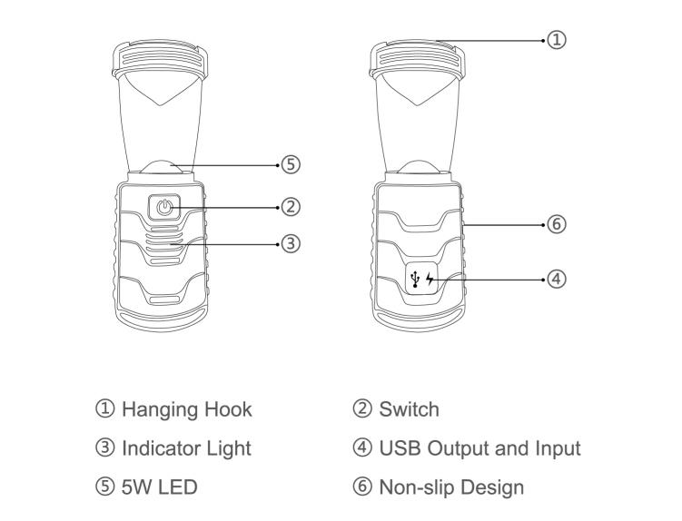- Connect USB cable of mobile or digital devices with the USB port of lantern.