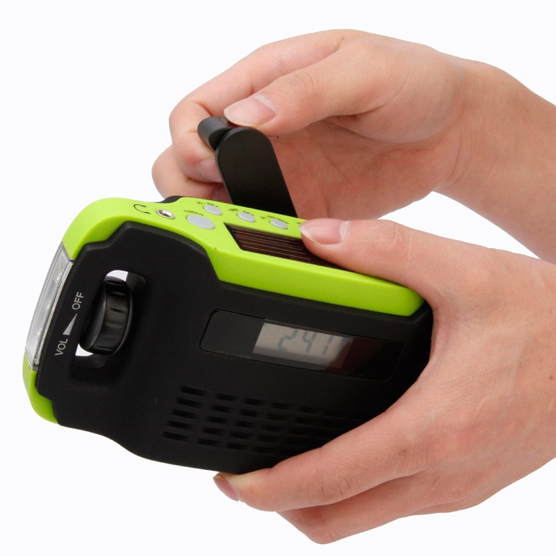 - Cranking for power and powered by solar panel, no external batteries are needed, store energy by built-in rechargeable battery; green, environmental friendly, economy, safety, (the common battery will leak easily), reuse limitlessly